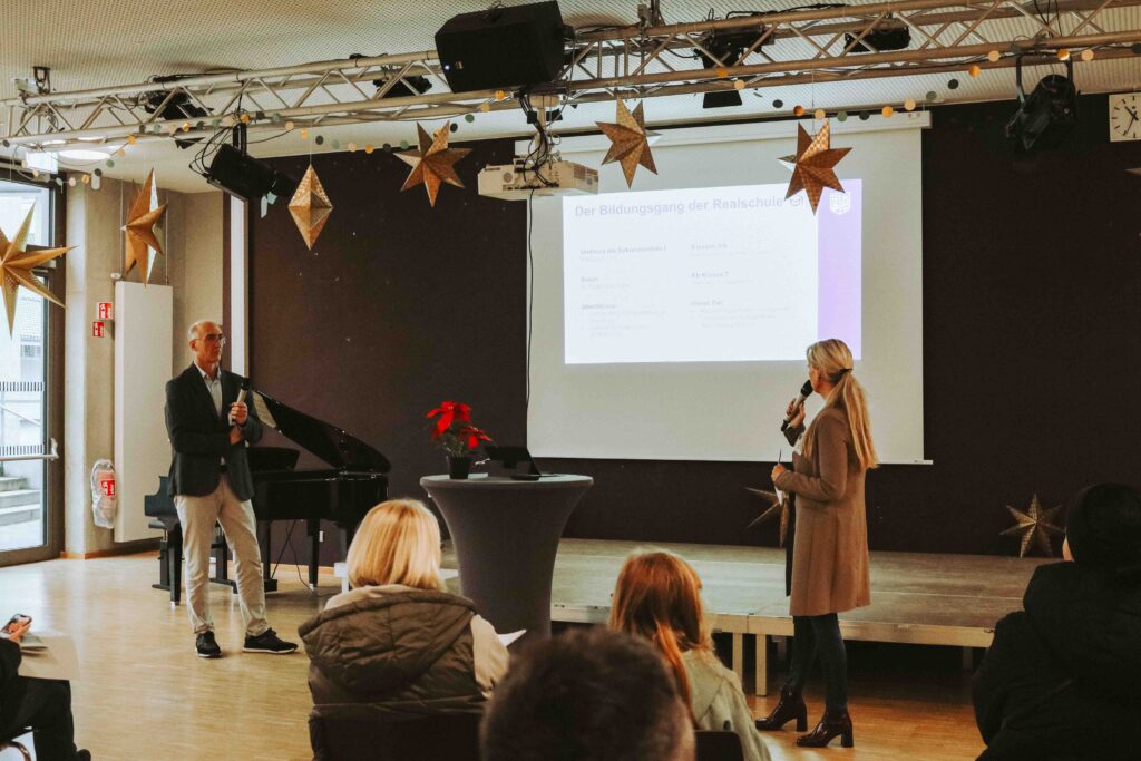 Gleich zu Beginn begrüßten Frau Dr. Drewniok und Herr Philippek die Besucherinnen und Besucher mit einer informativen Präsentation in der Aula. Dabei stellten sie die besonderen Schwerpunkte unserer Schule vor und zeigten anschaulich, was unseren Schulalltag prägt und ausmacht.