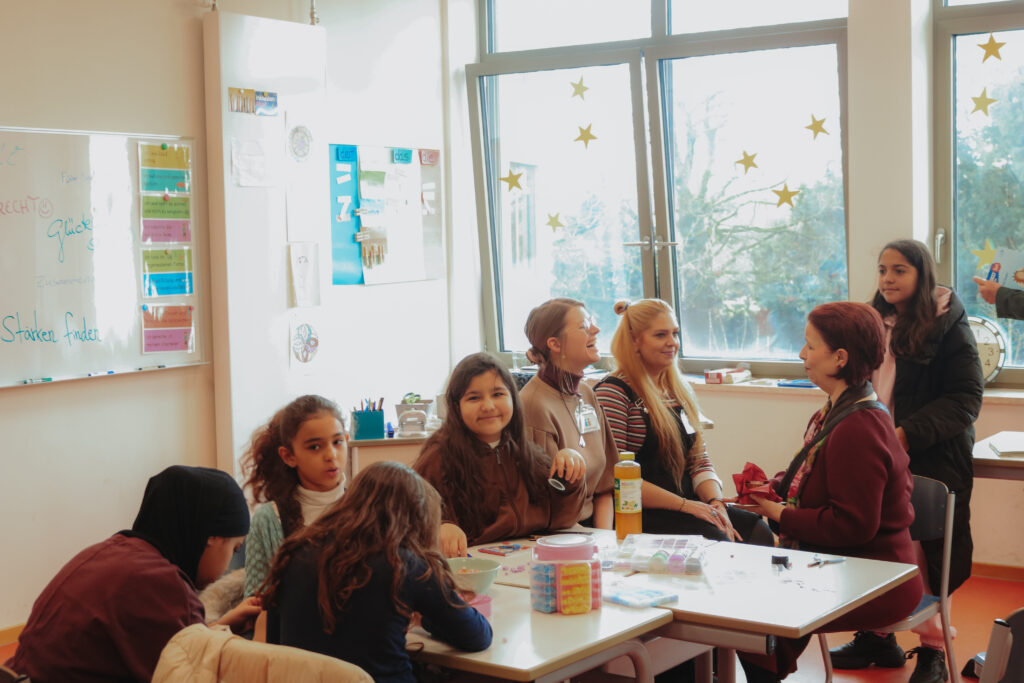 Im Anschluss nutzten viele Gäste die geführten Rundgänge durch das Schulgebäude, um unsere Unterrichtsräume, Fachbereiche und Lernangebote kennenzulernen. Besonders viel Freude bereitete den Schülerinnen und Schülern die Rallye: An jeder Mitmachstation konnten sie Stempel sammeln, die später im Weihnachtscafé bei Frau Sahbaz zur Teilnahme an einer kleinen Preisvergabe eingelöst wurden. Dort durfte sich jedes Kind ein Geschenk aussuchen.