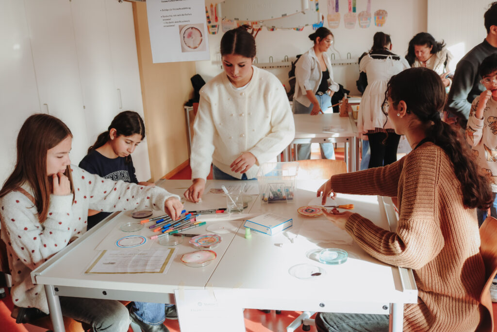 In den naturwissenschaftlichen Räumen konnten spannende Experimente aus Chemie, Biologie und Physik ausprobiert werden. Unsere Französischlehrerinnen Frau Meretaki und Frau Frenzel gaben Einblicke in das Fach Französisch und stellten typische Unterrichtsformen vor.