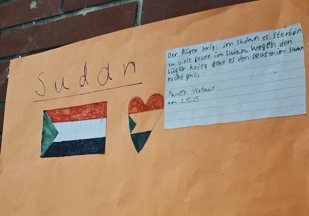 Am Dienstag, den 02.12.2025 hat die Klasse 6a einen Pausenverkauf organisiert. Wir haben den Pausenverkauf gemacht, weil es zurzeit einen schlimmen Bürgerkrieg im Sudan gibt. Viele Menschen haben dort kein Zuhause mehr, zu wenig zu essen und leben in großer Not.