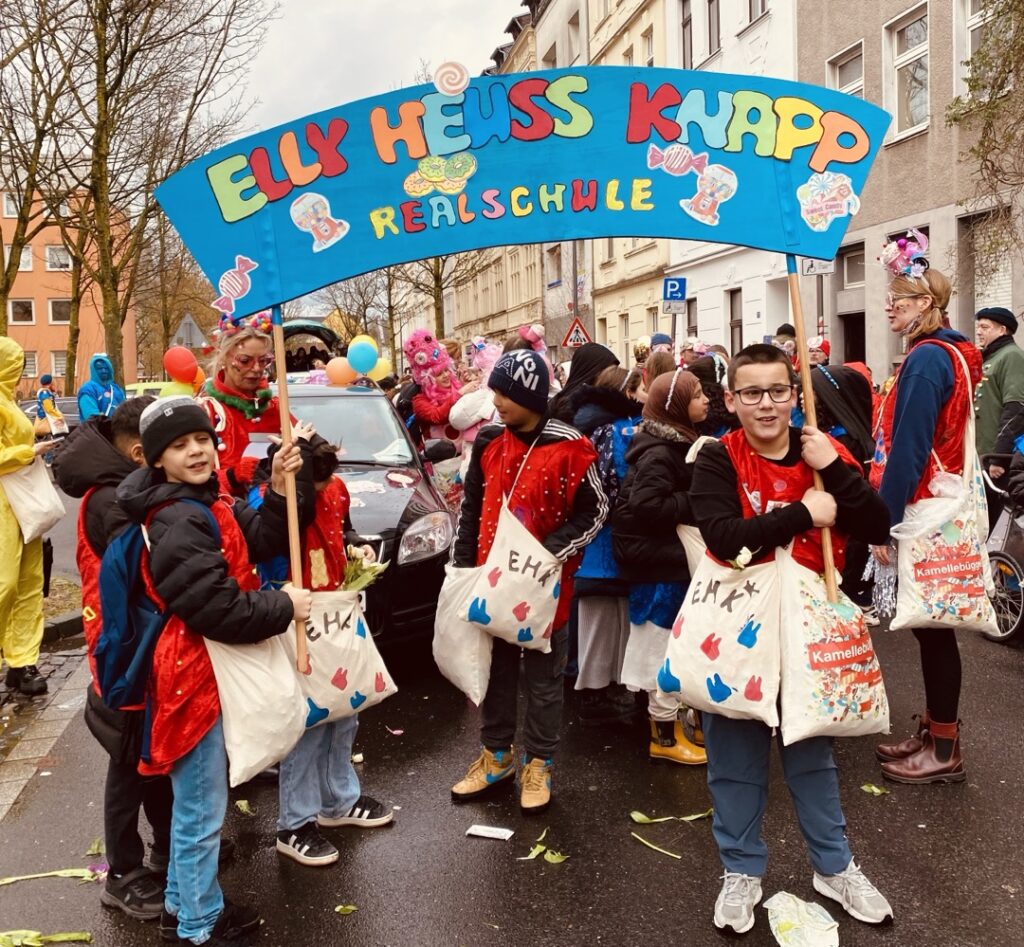 Am Karnevalsdienstag, 17. Februar 2026, war es nach mehrjähriger Abstinenz endlich wieder soweit: Die Elly-Heuss-Knapp Realschule zog jeck durch Mülheim. Mit großer Freude und närrischem Elan nahmen Schülerinnen und Schüler sowie Lehrkräfte und Eltern beim Mülheimer Veedelszoch teil.