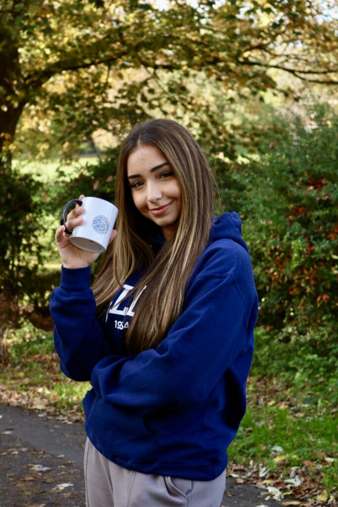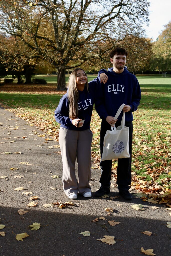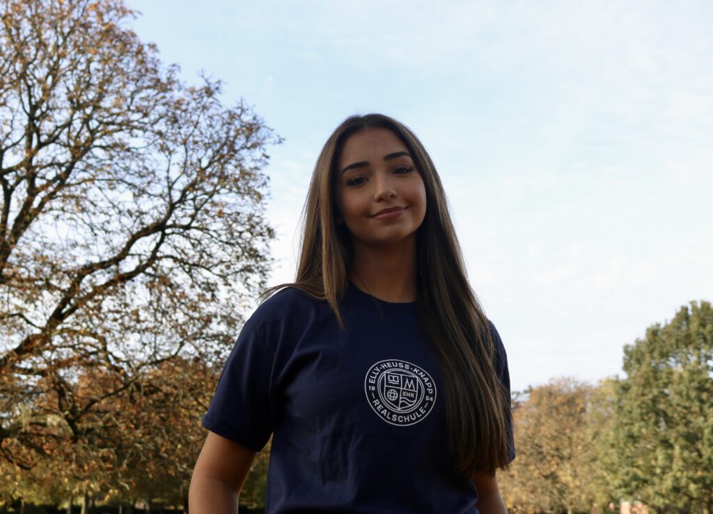 Damit die Produkte einmal ganz frisch und aktuell präsentiert werden, haben zwei Schüler*innen aus der 9. Klasse an einem kleinen Fotoshooting teilgenommen. Begleitet wurde das Ganze von der Foto-AG, die die Artikel in einer tollen herbstlichen Kulisse perfekt in Szene gesetzt hat.